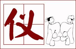 简化字“仪”,本义为法制、制度之意。 端庄、规范、有礼的仪表,具有积极的示范作用,故“仪”有典范、表率之意。《荀子·正论》:“上者,下之仪也。”君主及当朝者是臣民的表率。表率及典范的影响力非比寻常,是人人竞相效仿的榜样,故“仪”又引申效法之意。“仪”为法度、准则时,与典范、表率有相同之处,二者都是人们行为的衡量标准,只是法度、准则是通过国家的强制性实行的,而典范、表率是人们自愿推崇而发自内心地去效仿。