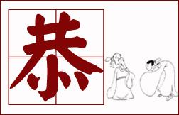 恭为敬慎不懈。阮籍《咏怀诗十三首》:“处哀不伤,在乐不淫,恭承明训,以慰我心。”“恭承”为敬奉。“恭”做动词时,由双手供奉之动作和恭敬庄重之心,引申为拱揖。
